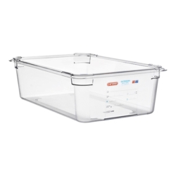 De GN1/1 bak is voorzien van gladde randen en afgeronde hoeken, wat niet alleen de veiligheid verhoogt, maar ook het schoonmaken vergemakkelijkt. Deze eigenschappen maken het eenvoudig om voedselresten te verwijderen en de bak snel klaar te maken voor hergebruik. Bovendien is de bak stapelbaar, wat ruimtebesparing in de keuken mogelijk maakt.