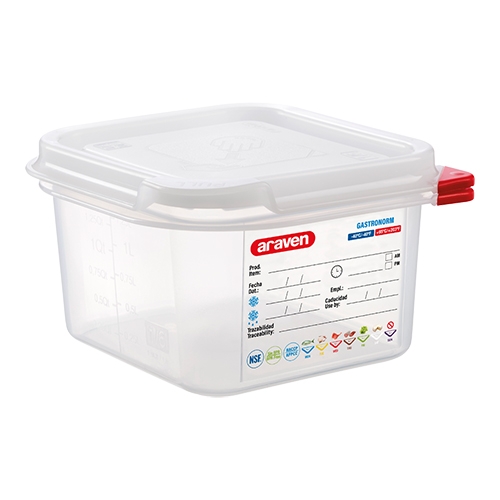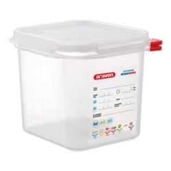 Met zijn robuuste constructie en praktische eigenschappen is de Voedseldoos GN1/6 |150 mm| een onmisbaar hulpmiddel voor iedereen die waarde hecht aan voedselveiligheid en efficiëntie. Of u nu een professionele chef-kok bent of een thuiskok, deze voedseldoos biedt de betrouwbaarheid en functionaliteit die u nodig heeft om uw keuken georganiseerd en uw voedsel vers te houden. Kies voor de Voedseldoos GN1/6 en ervaar het gemak van een product dat is ontworpen met oog voor detail en kwaliteit.