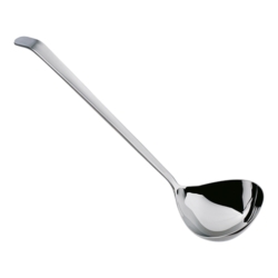 De ergonomisch ontworpen handgreep ligt comfortabel in de hand en zorgt voor een stevige grip, zelfs wanneer de lepel volledig is gevuld. Dit maakt het niet alleen gemakkelijker om nauwkeurig te serveren, maar vermindert ook de kans op morsen en knoeien. De lepel is ontworpen met een diepe kom, waardoor hij perfect is voor het opscheppen van royale porties, terwijl de gladde afwerking ervoor zorgt dat sauzen en vloeistoffen soepel en zonder weerstand worden geserveerd.